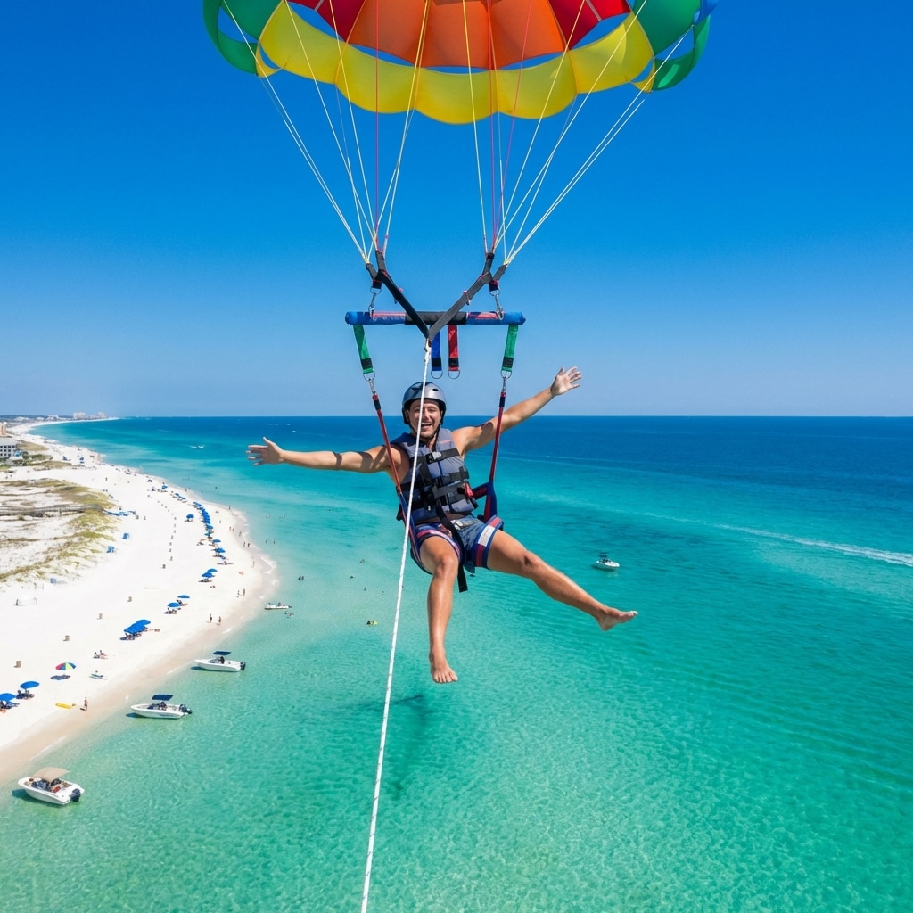 Destin, often called the “World’s Luckiest Fishing Village,” is also a premier destination for water sports enthusiasts. Parasailing here isn’t just an activity; it’s an immersive experience, providing unparalleled panoramic views of the coastline, marine life, and the vast expanse of the shimmering sea. Get ready to feel the ultimate freedom as you glide through the clear Florida sky.